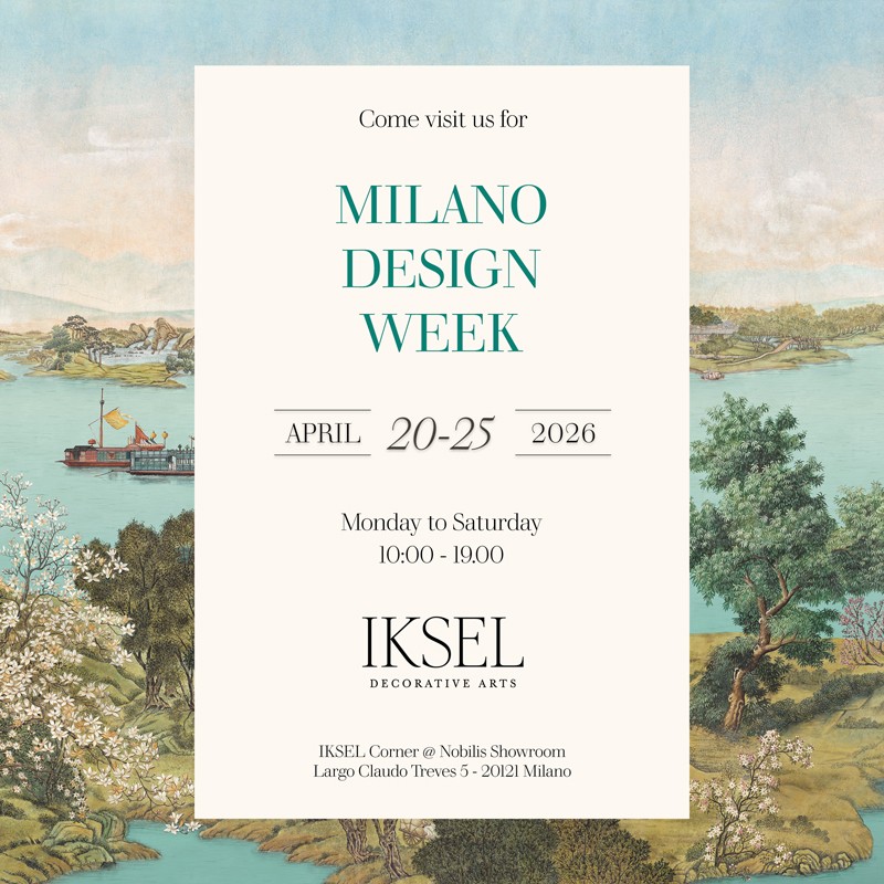 IKSEL Decorative Arts invites you to explore our showcase during Milano Design Week 2026 at the IKSEL Corner @Nobilis (Largo Treves, 5). Immerse yourself in our latest collection of Scenic and Repeat Design Wallpapers, Architectural Decors, Ceilings and Furnishing Fabrics.